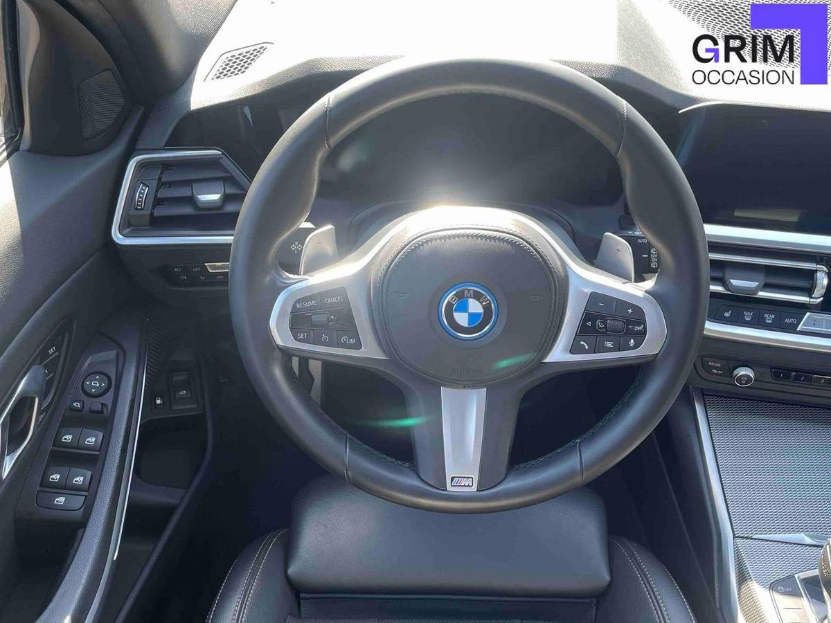 • Volant M gainé cuir Trois branches, aplati en bas et marque à 12 heures en noir. Volant en cuir noir 'Walknappa' avec surpiqûres noires, inserts chrome nacré et repose-pouce dans le volant. Logo M sur la base du volant.