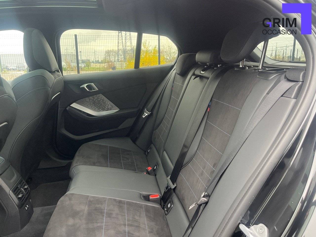• Sellerie Alcantara / Similicuir Veganza Schwarz avec surpiqûres bleues