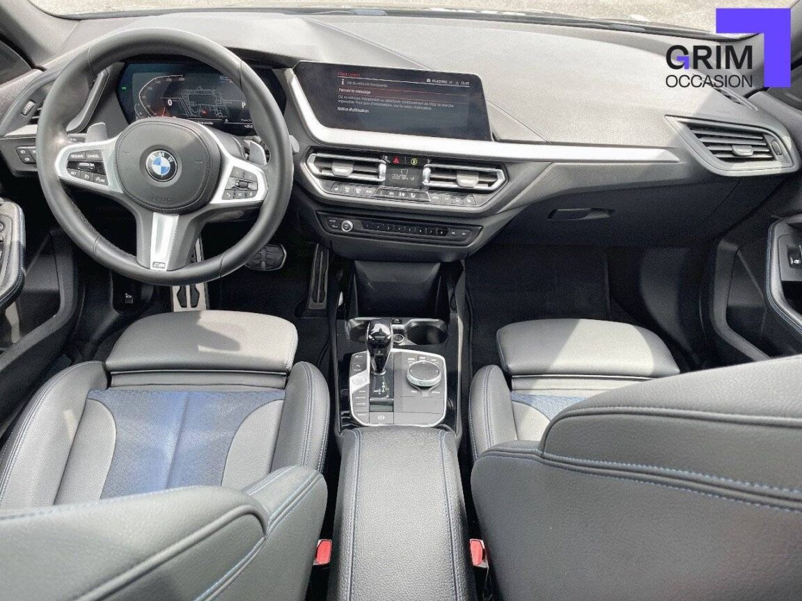 • Volant M gainé cuir Trois branches, aplati en bas et marque à 12 heures en noir. Volant en cuir noir 'Walknappa' avec surpiqûres noires, inserts chrome nacré et repose-pouce dans le volant. Logo M sur la base du volant.