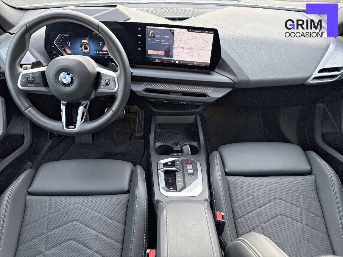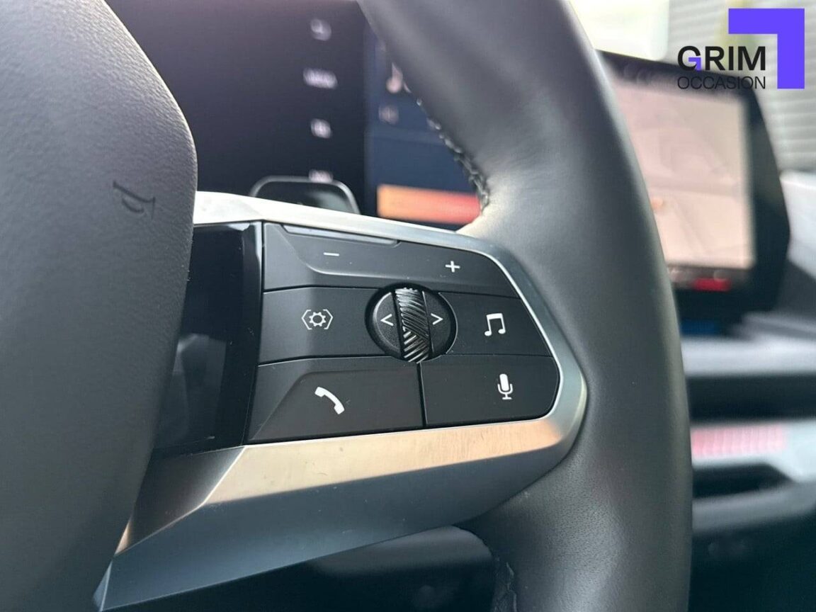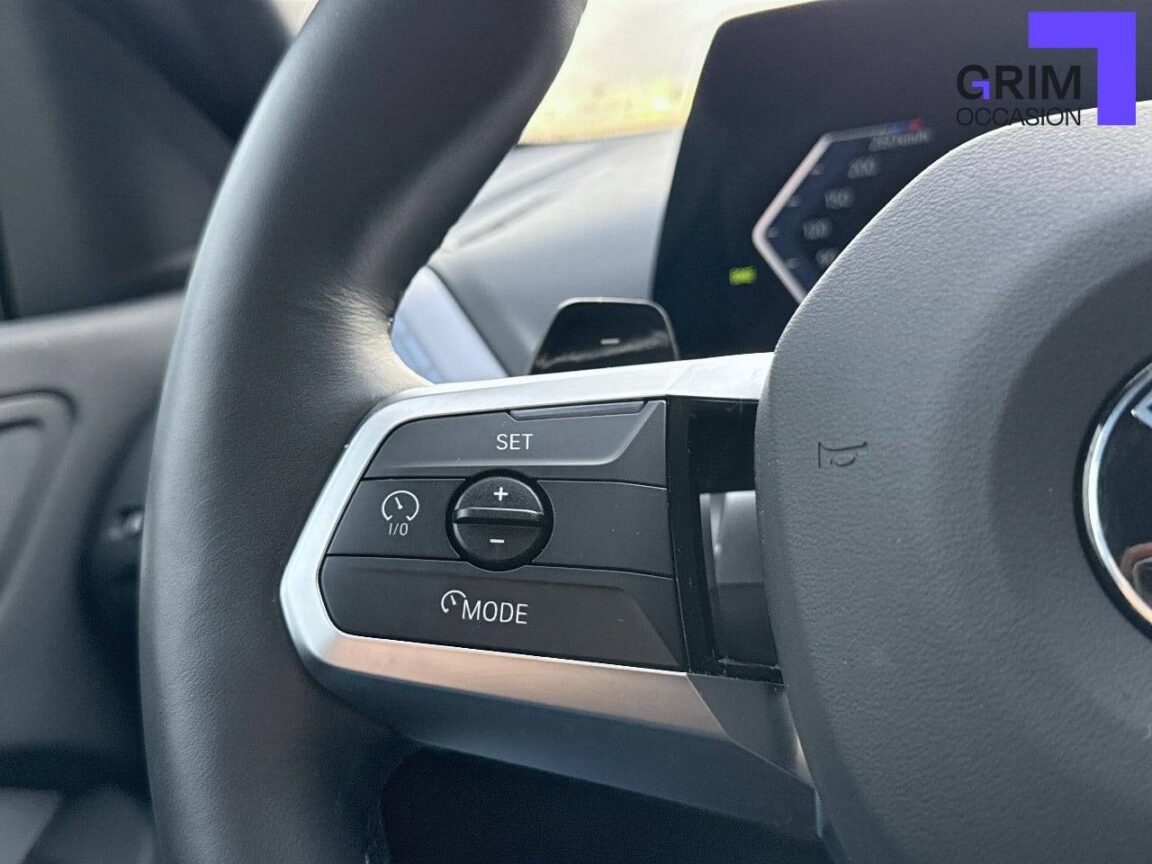 • Volant M gainé cuir Trois branches. Jante en cuir noir 'Walknappa', inserts chrome perlé et repose-pouce dans le volant. Logo M sur la base du volant.Palettes de changement de rapport avec fonction BOOST.