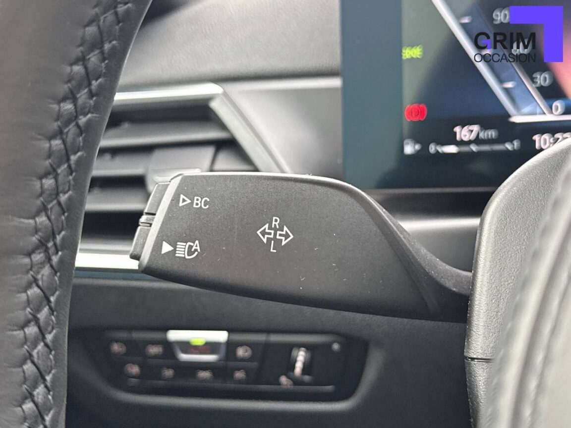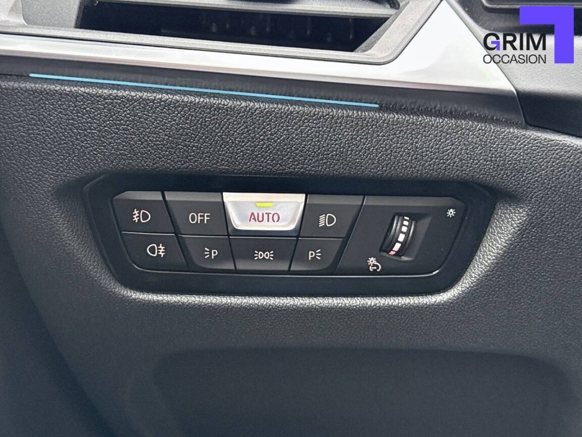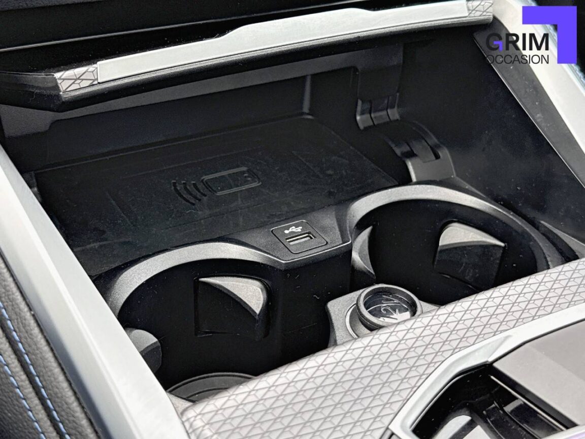 • Kit de rangement - Bac de rangement dans les portes avant (une bouteille de 1L peut y prendre place) Contrôle Dynamique de la Stabiité DSC et Contrôle Dynamique de la Traction DTC - Prise 12 V dans la console centrale "Controller" iDrive avec touches de raccourci - Double prise USB Type C dans la console centrale arrière Détecteur de pluie et allumage automatique des projecteurs - Filets au dos des sièges avant et dans le coffre à bagages,