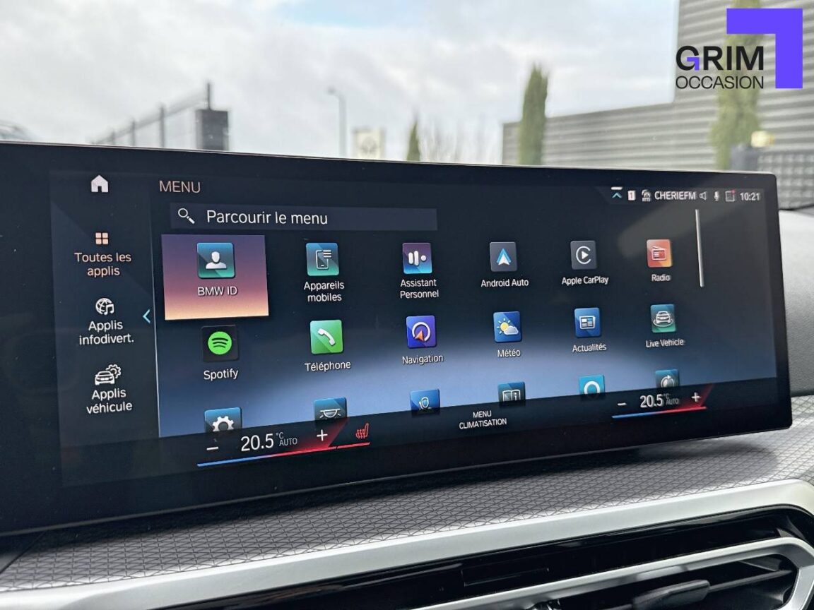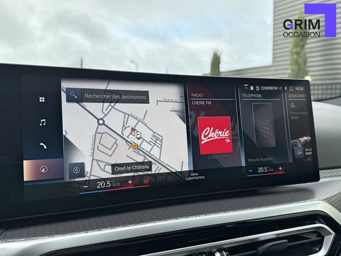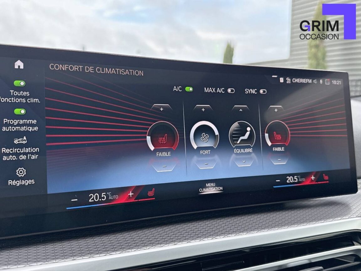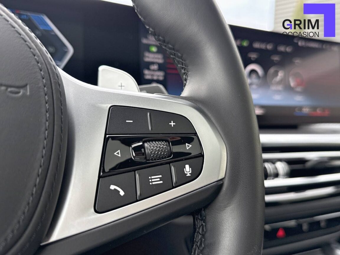 • Kit de rangement - Bac de rangement dans les portes avant (une bouteille de 1L peut y prendre place) Contrôle Dynamique de la Stabiité DSC et Contrôle Dynamique de la Traction DTC - Prise 12 V dans la console centrale "Controller" iDrive avec touches de raccourci - Double prise USB Type C dans la console centrale arrière Détecteur de pluie et allumage automatique des projecteurs - Filets au dos des sièges avant et dans le coffre à bagages,