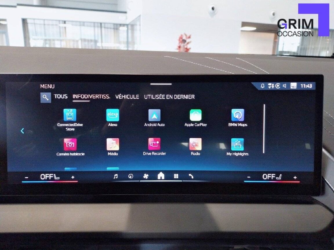 • BMW Live Cockpit Navigation Plus avec Écran BMW Curved Display BMW Curved Display, Nouveau système d'exploitation BMW Operating System 9 avec widgets variables configurables qui affichent des informations en temps réel, Remote Software Upgrade : mise à jour du logiciel de la BMW à distance, Connectivité 4G LTE, Mise à jour pour les données de carte de navigation Over the Air (OtA), BMW Maps : nouveau système de navigation, simplification de la recherche, calcul plus rapide, navigation apprenante.