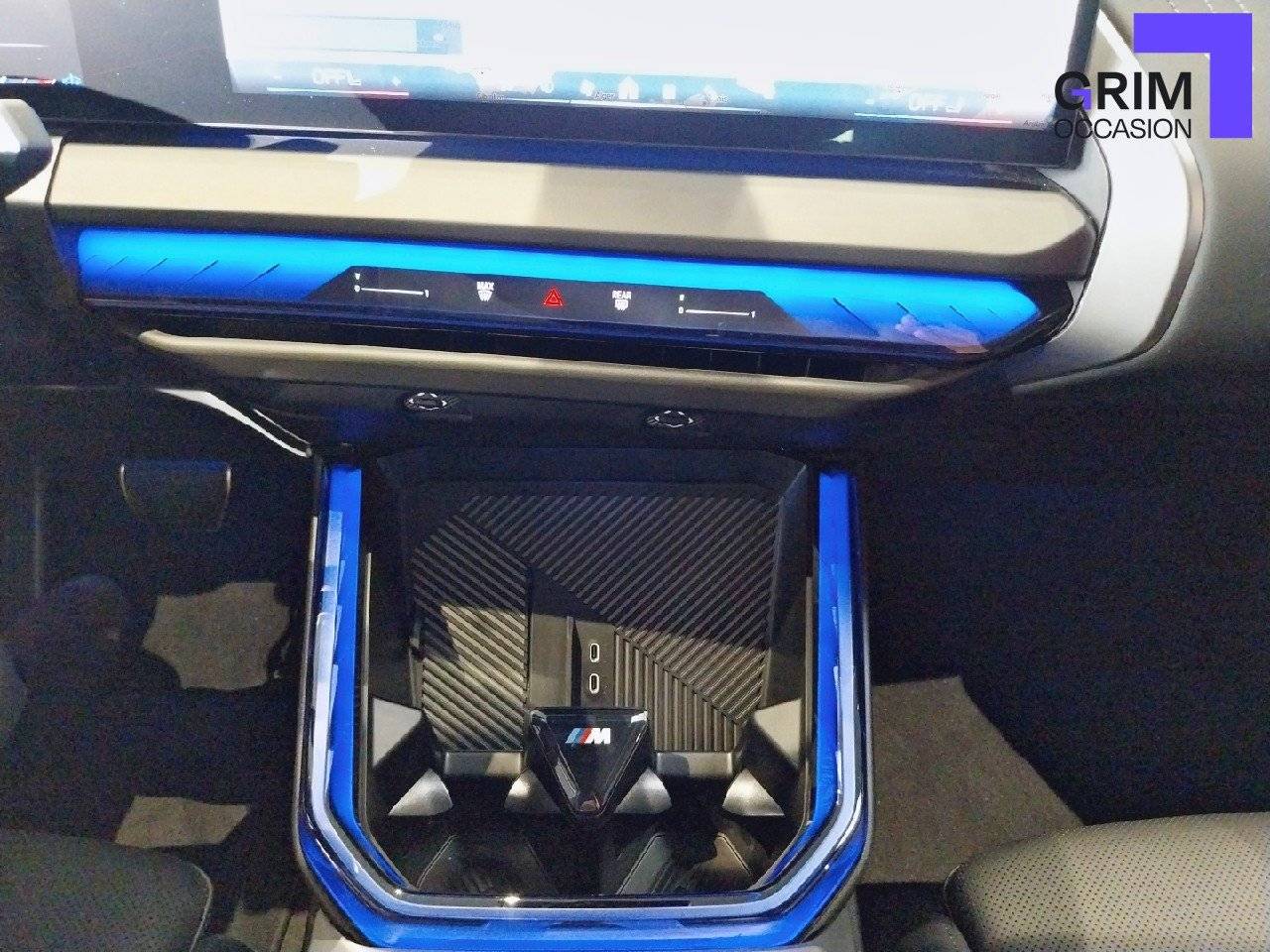 • Eclairage d'ambiance Rétroéclairage des éléments suivants (15 couleurs au choix): Poignées de portes AV, Partie inférieure du BMW Curved Display, Emplacement recharge sans fil smartphone, Contour du porte-gobelet, BMW Interaction Bar à l'aspect de verre cristallin, rétroéclairée dynamiquement.
