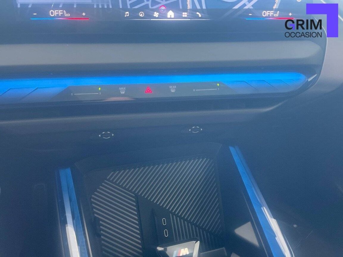 - Eclairage d'ambiance Rétroéclairage des éléments suivants (15 couleurs au choix): Poignées de portes AV, Partie inférieure du BMW Curved Display, Emplacement recharge sans fil smartphone, Contour du porte-gobelet, BMW Interaction Bar à l'aspect de verre cristallin, rétroéclairée dynamiquement.