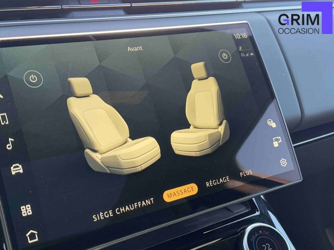 - Sièges AV chauffants, ventilés et massants réglables électriquement en 20x20 directions à mémoire avec banquette AR chauffante, ventilée et inclinable électriquement et appuie-tête enveloppants