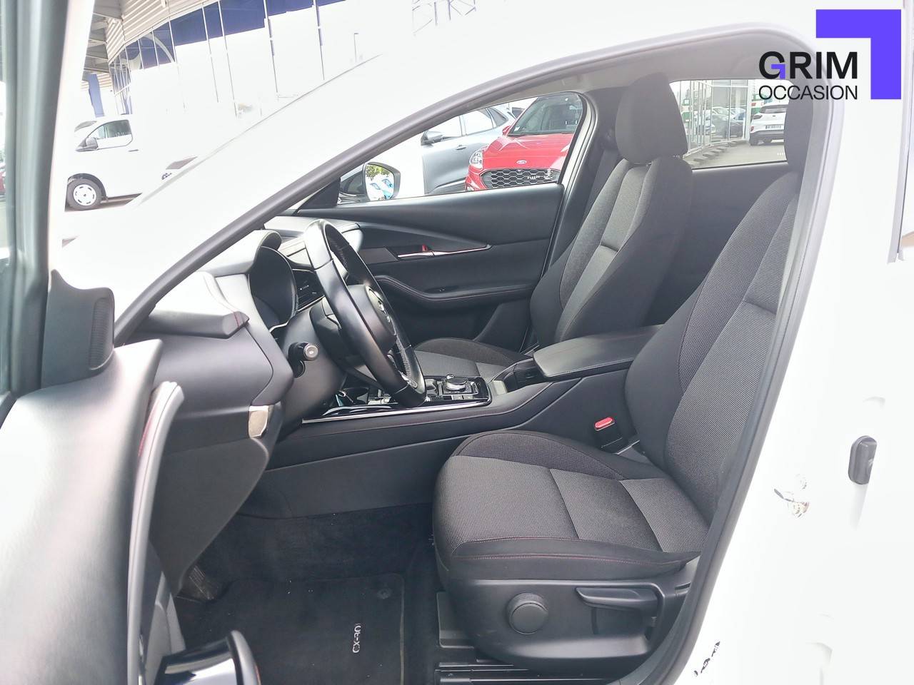 • Sellerie tissu avec surpiqûres rouges sur les sièges, le tableau de bord et l'accoudoir